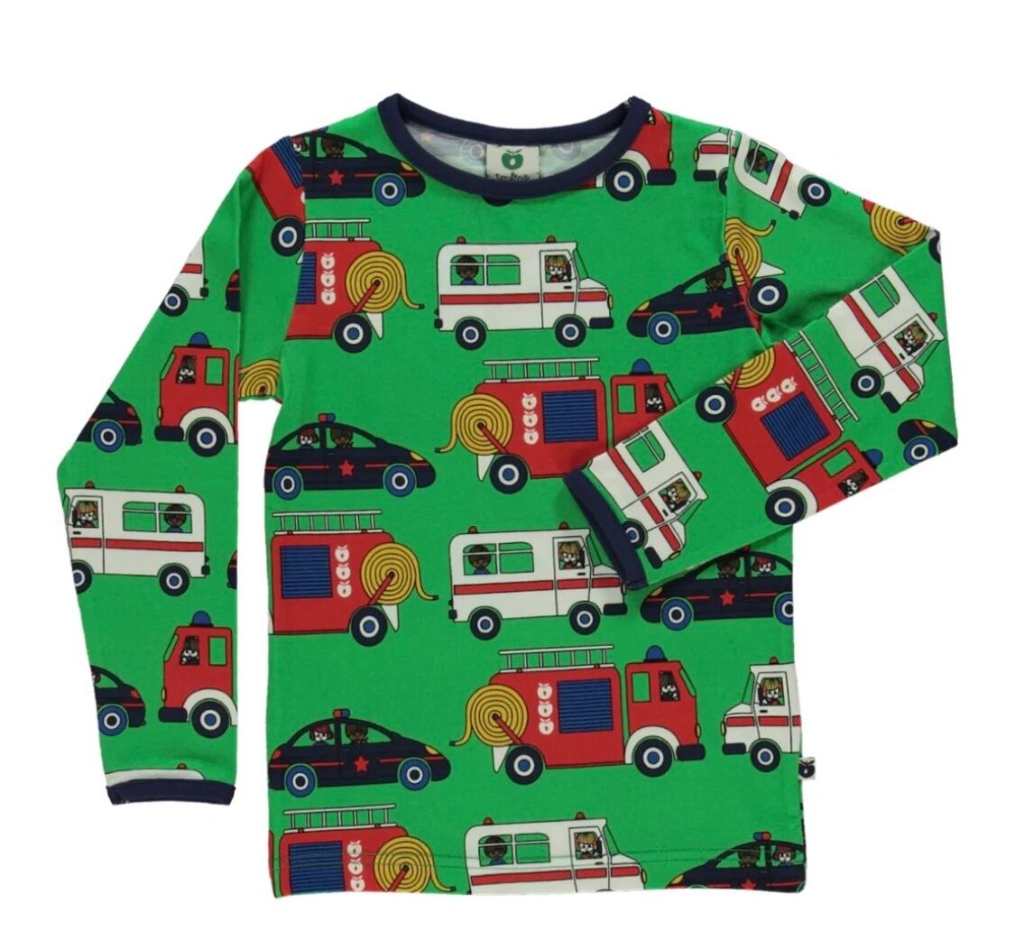 Småfolk long sleeve top with emergency vehicles green
