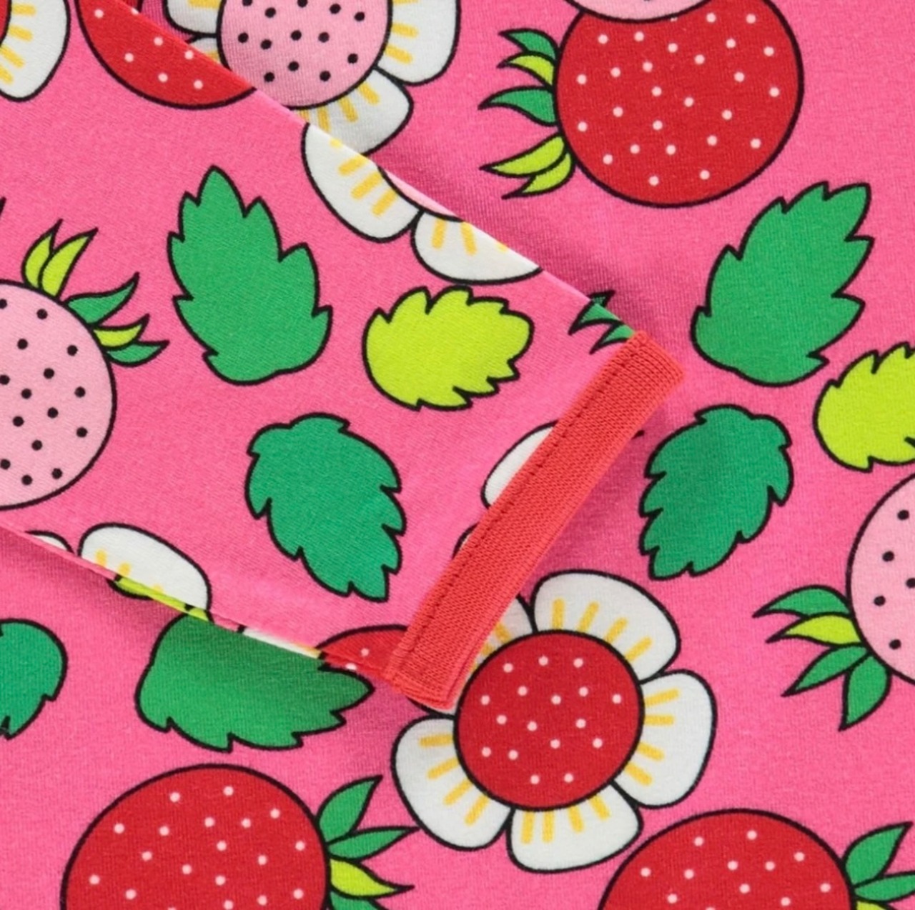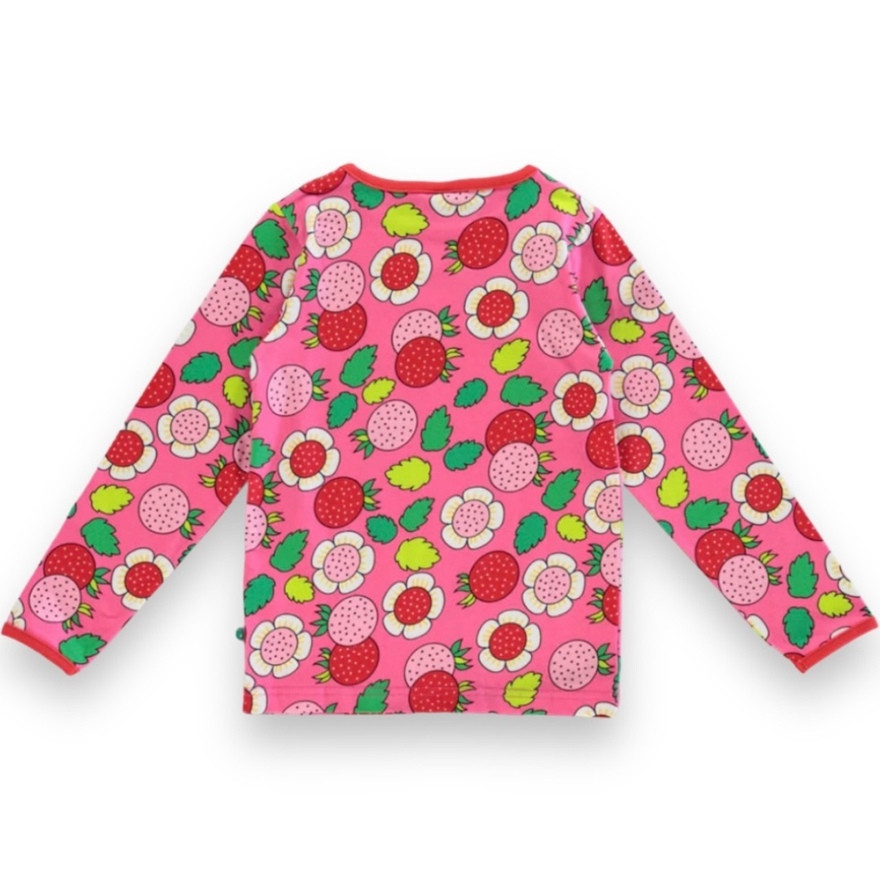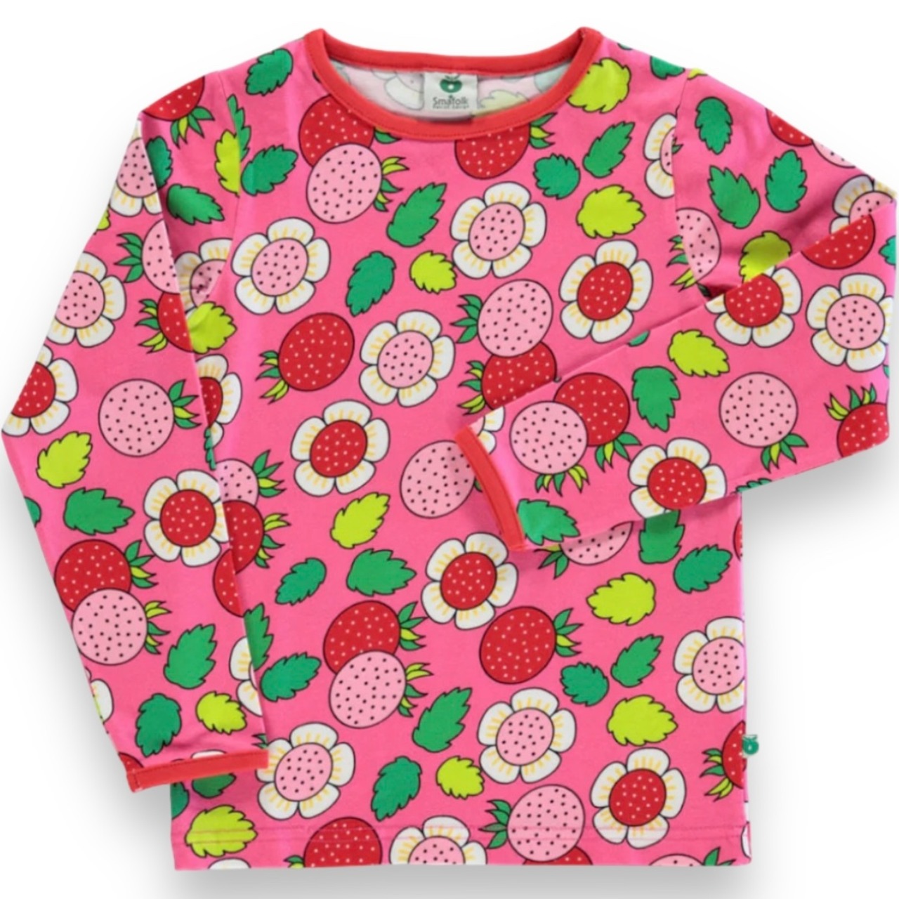 Småfolkのロングスリーブトップは、可愛らしいイチゴ柄が特徴的!