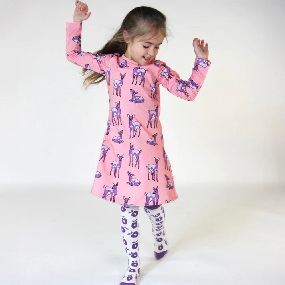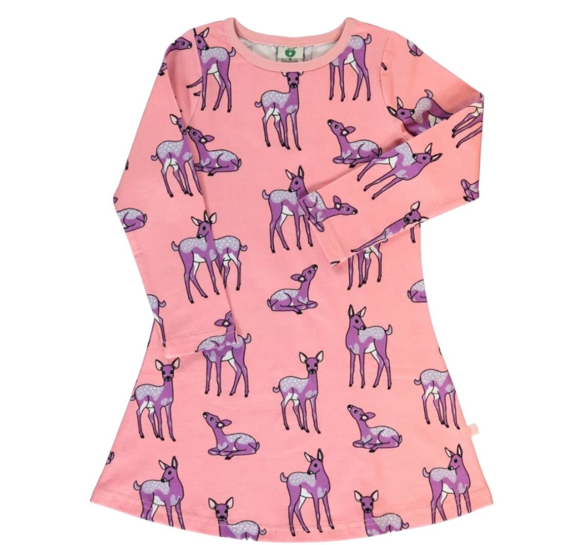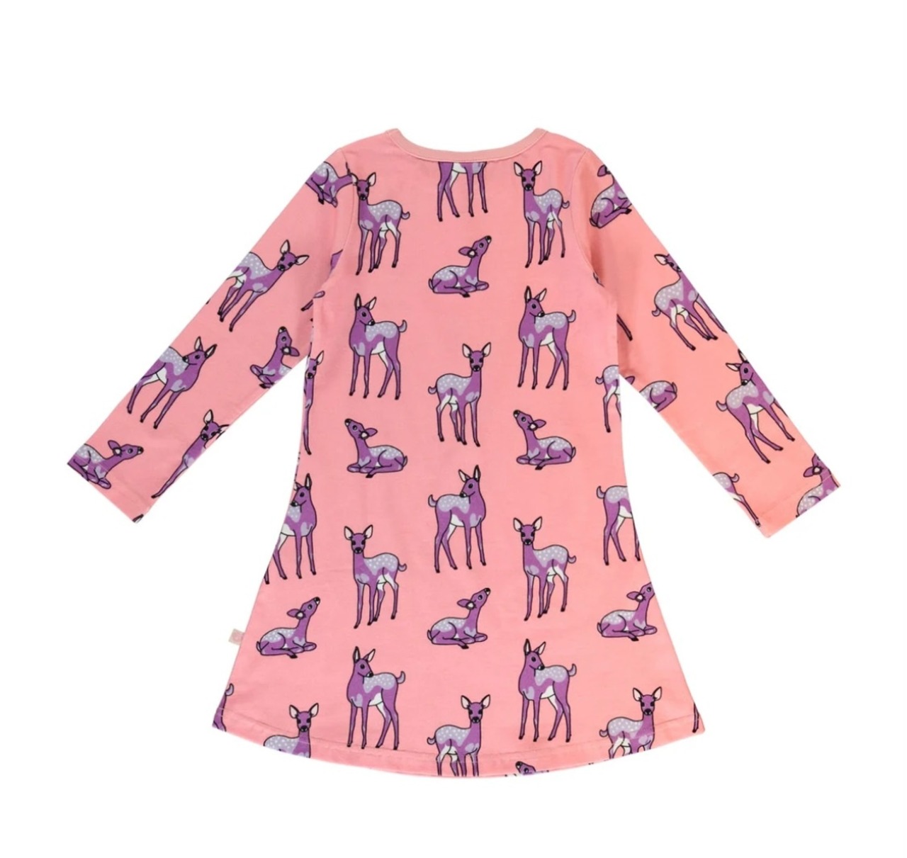 オーガニックで伸縮性のあるコットンジャージーで作られた鹿の長袖ドレス。