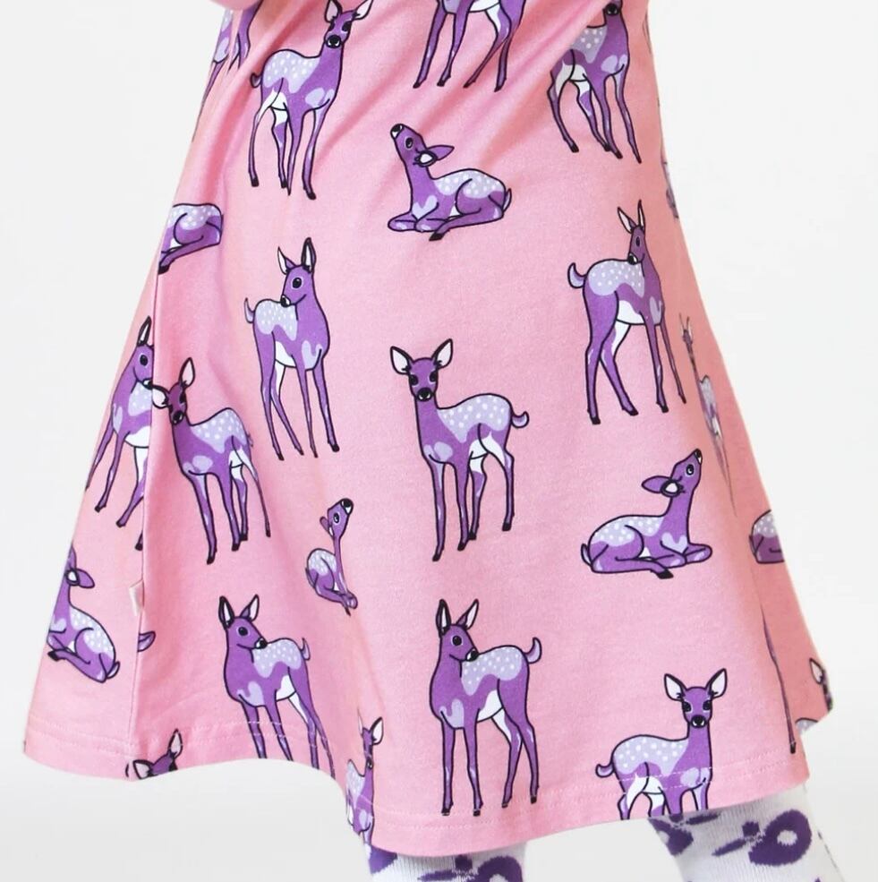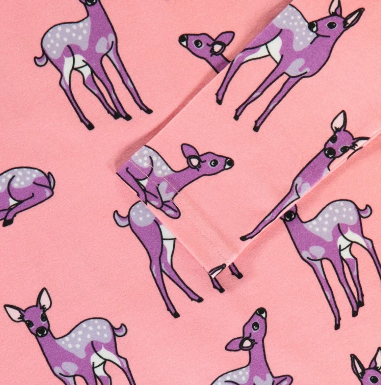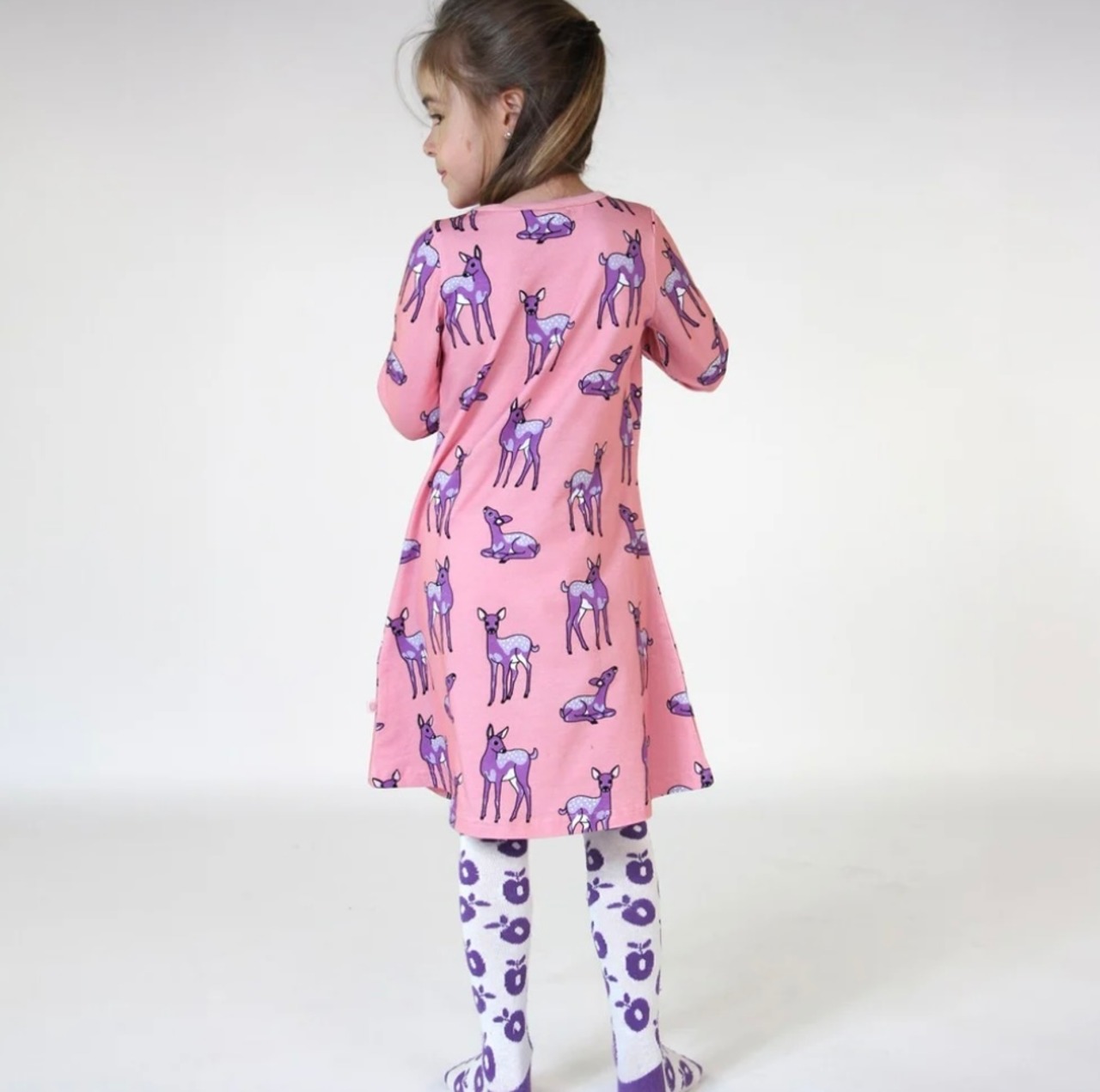 オーガニックで伸縮性のあるコットンジャージーで作られた鹿の長袖ドレス。