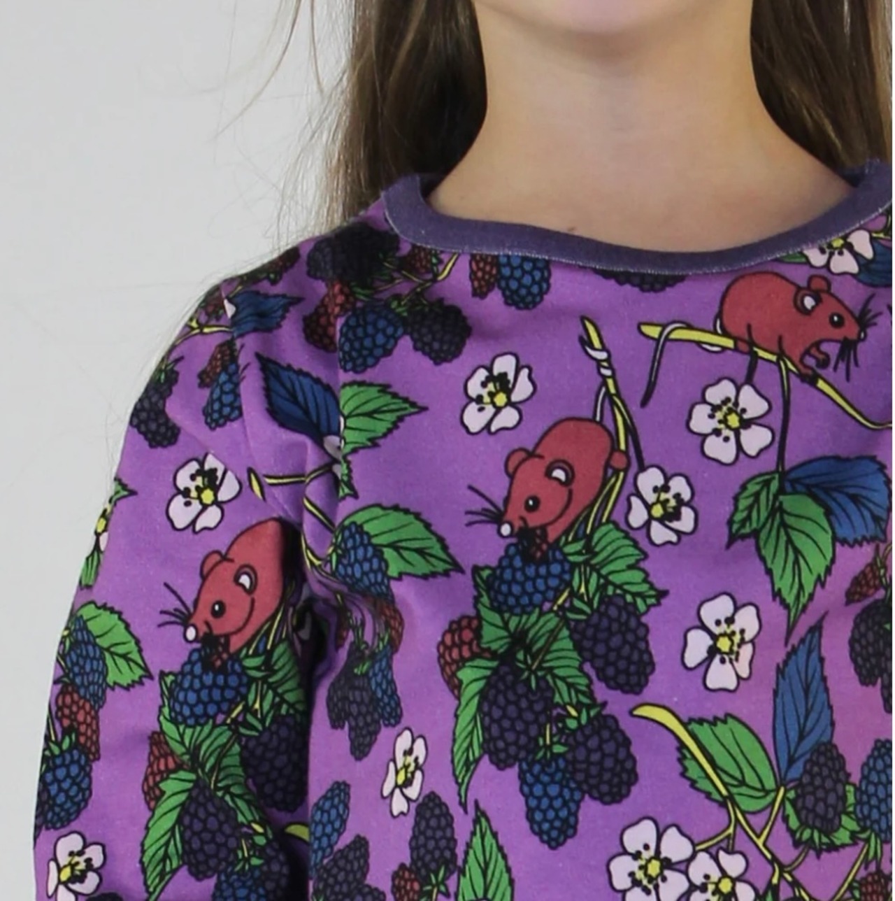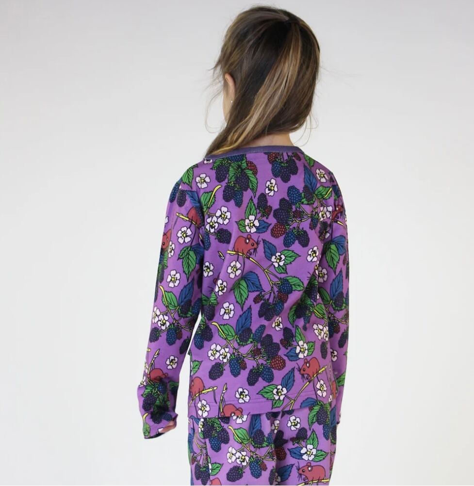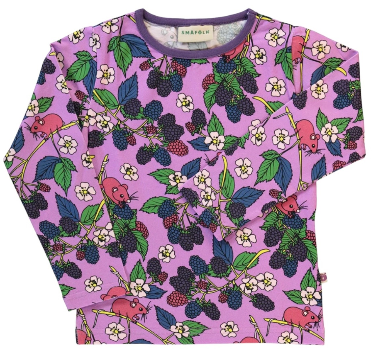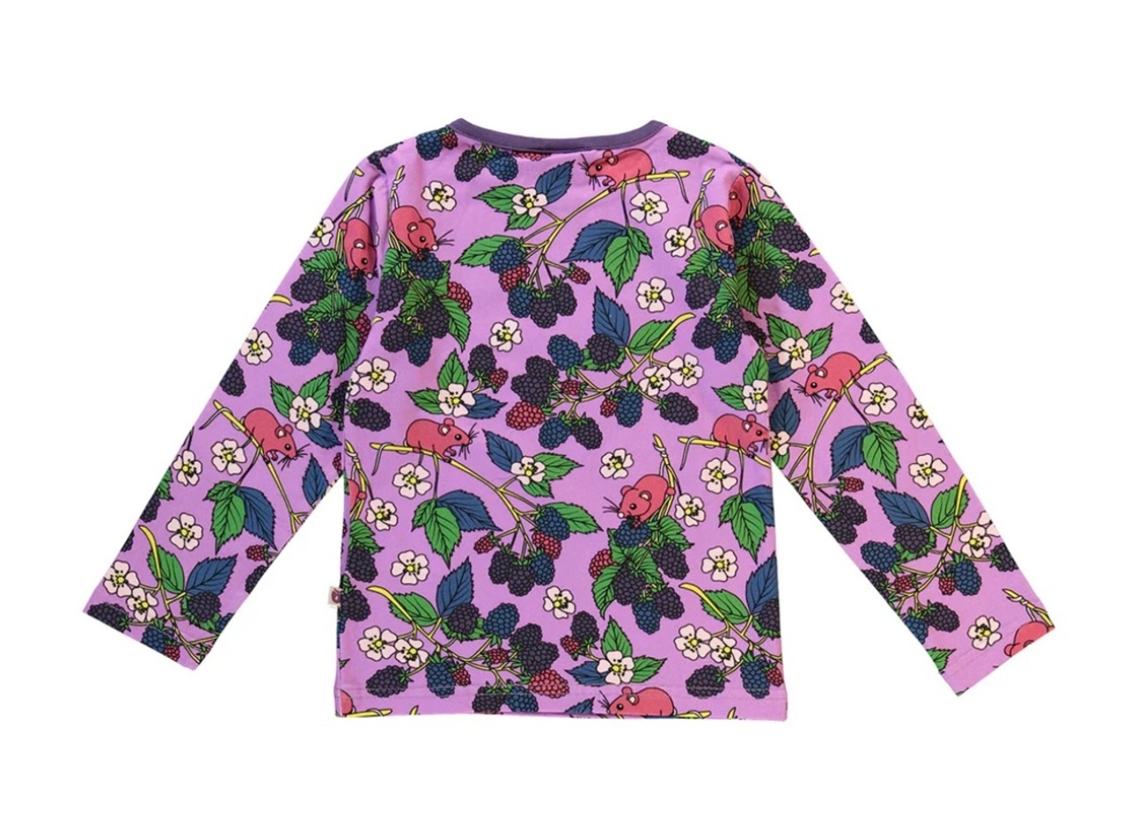 オーガニックで伸縮性のあるコットンジャージーで作られた、ブラックベリーの長袖Tシャツ。