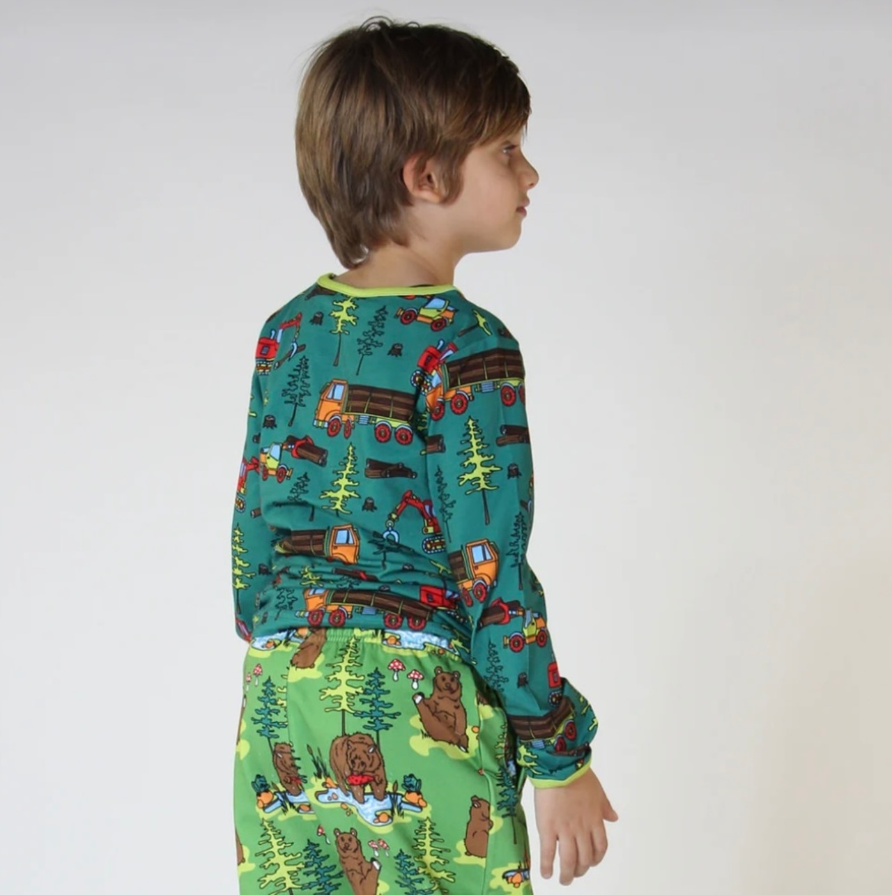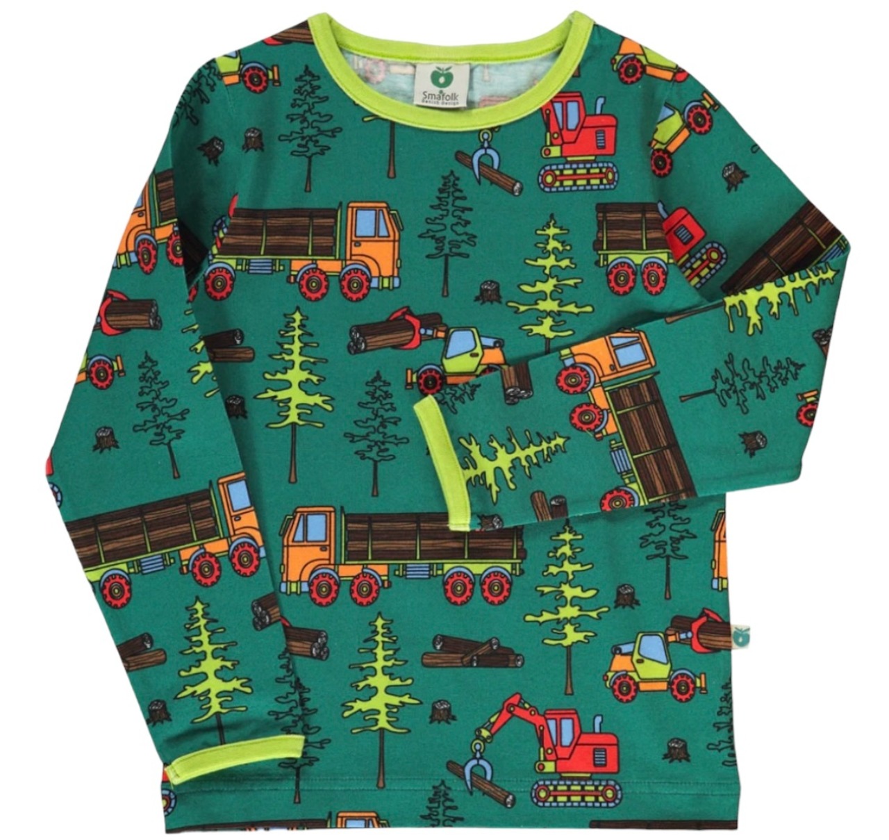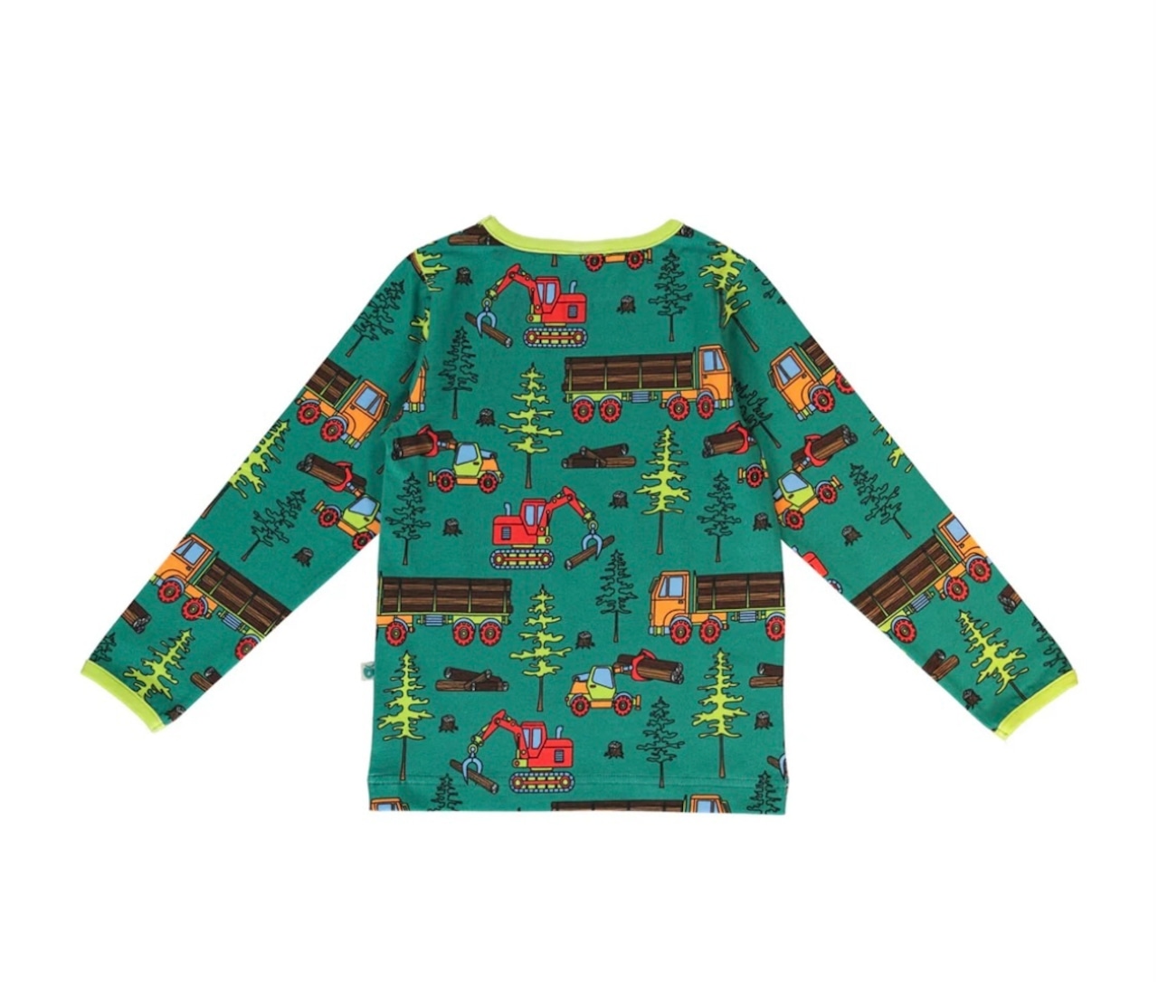 オーガニックで伸縮性のあるコットンジャージーで作られた、マシーンが描かれた長袖Tシャツ。