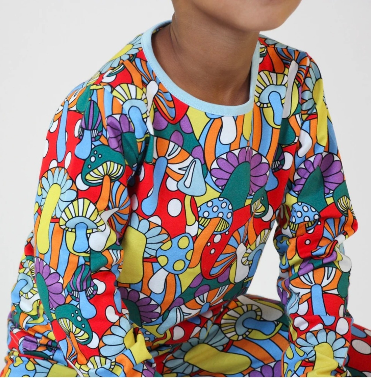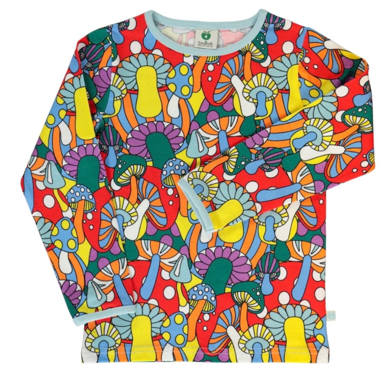 新鮮なキノコのプリントは、Småfolkの多くのスタイルによく合います。Småfolkのプリントは、幸せな色、ディテール、ストーリーに重点を置いて設計されています。
