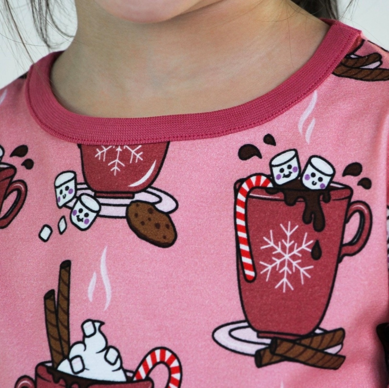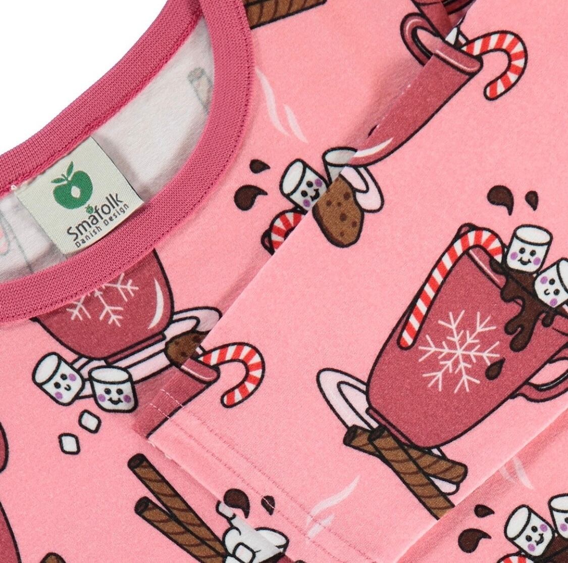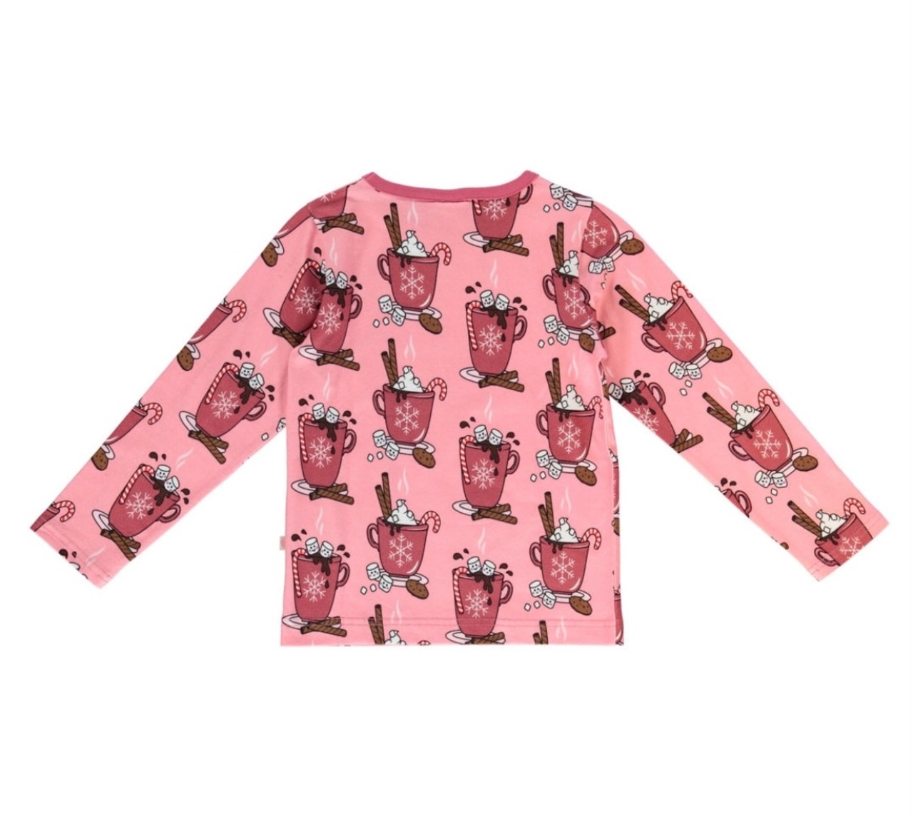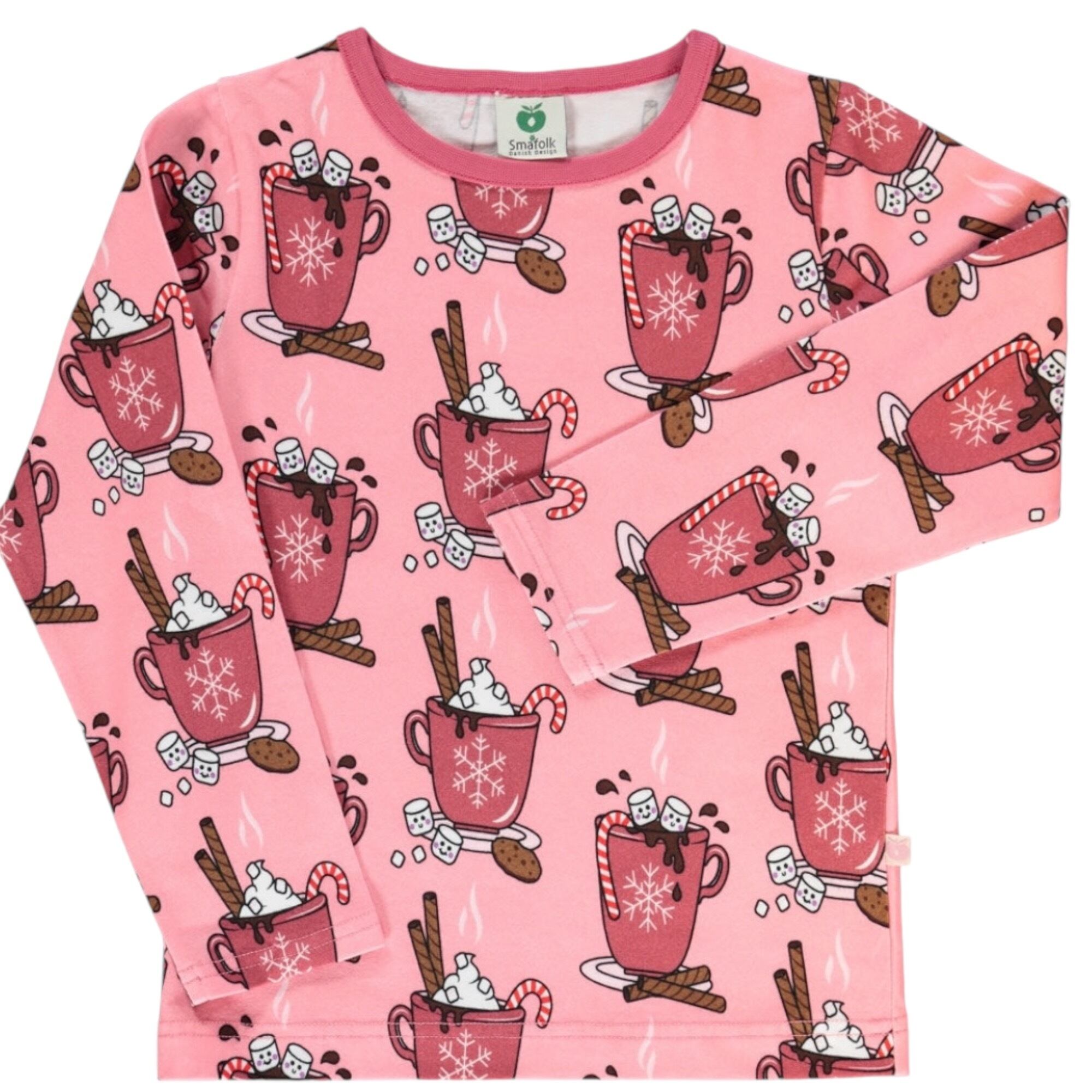 オーガニックで伸縮性のあるコットンジャージーで作られたホットチョコレートの長袖Tシャツ。
