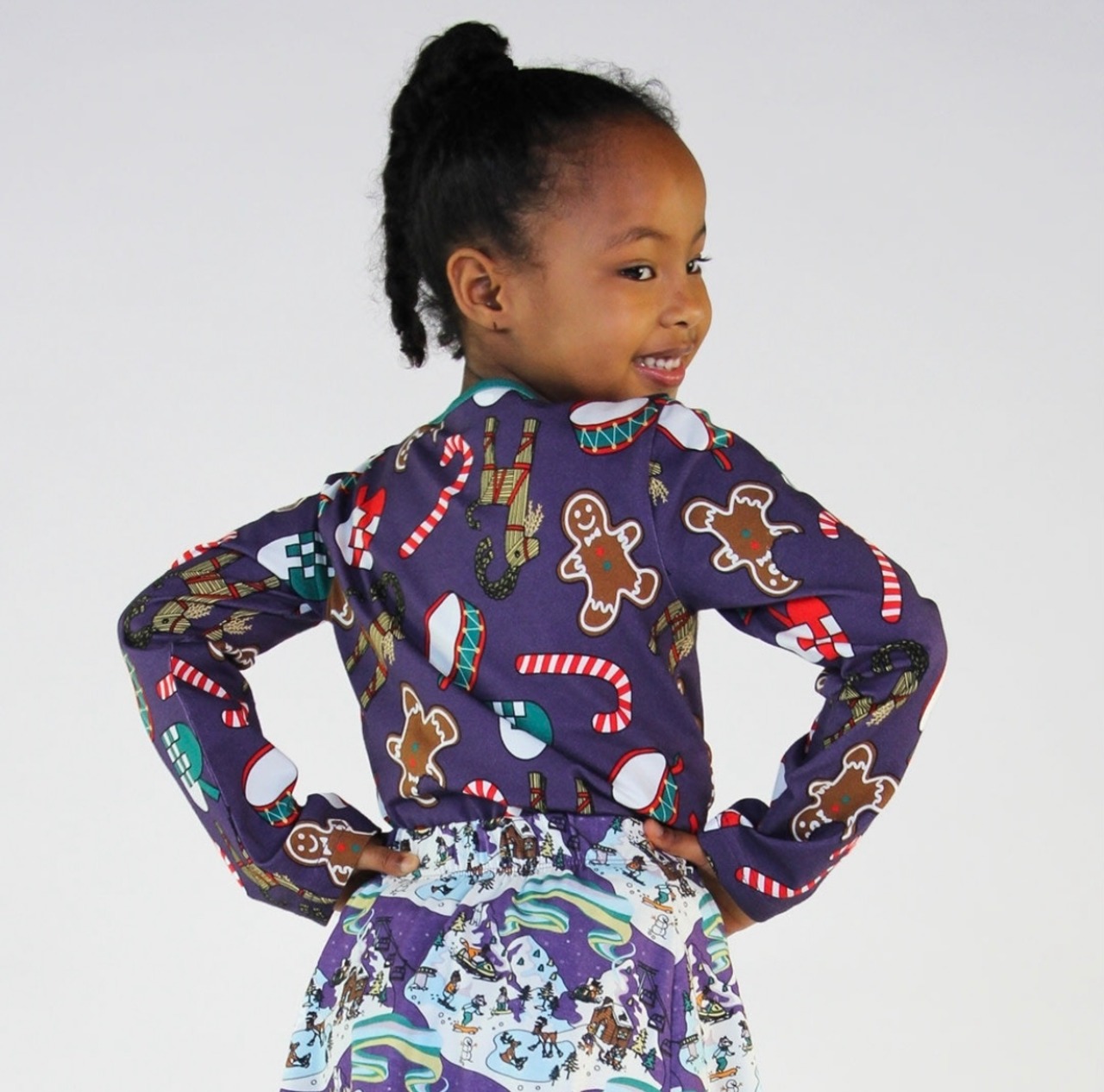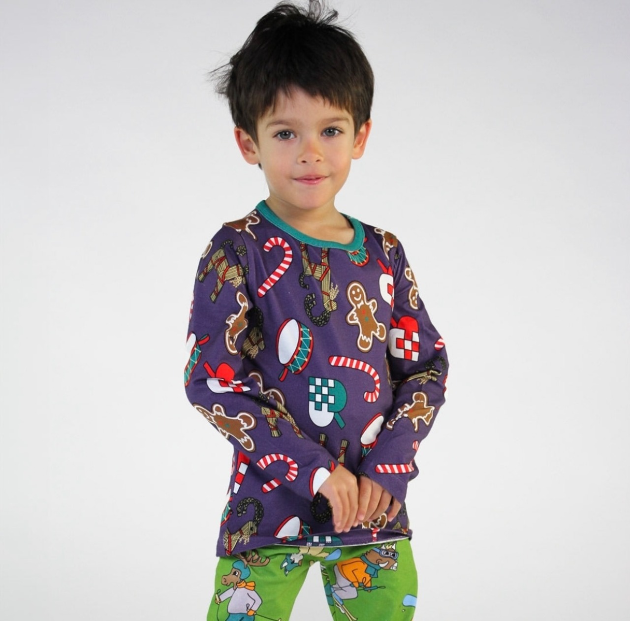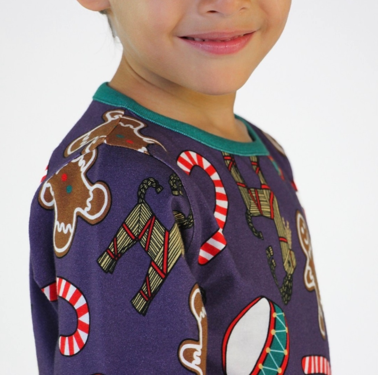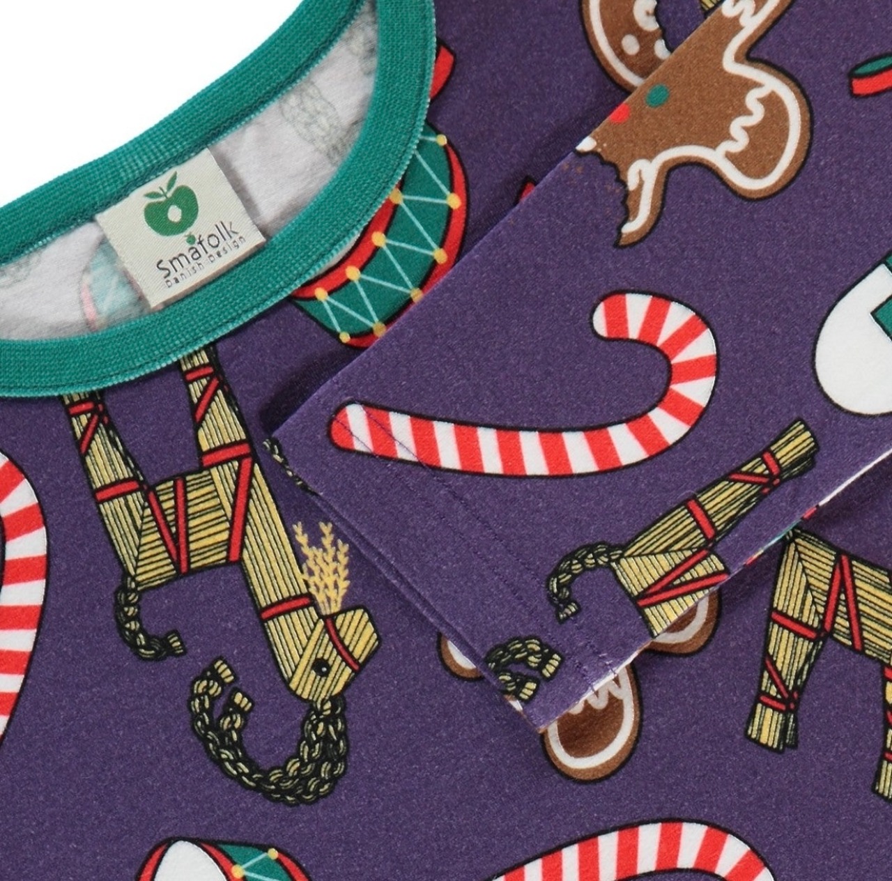 オーガニックで伸縮性のあるコットンジャージーで作られたクリスマスデコレーションの長袖Tシャツ。