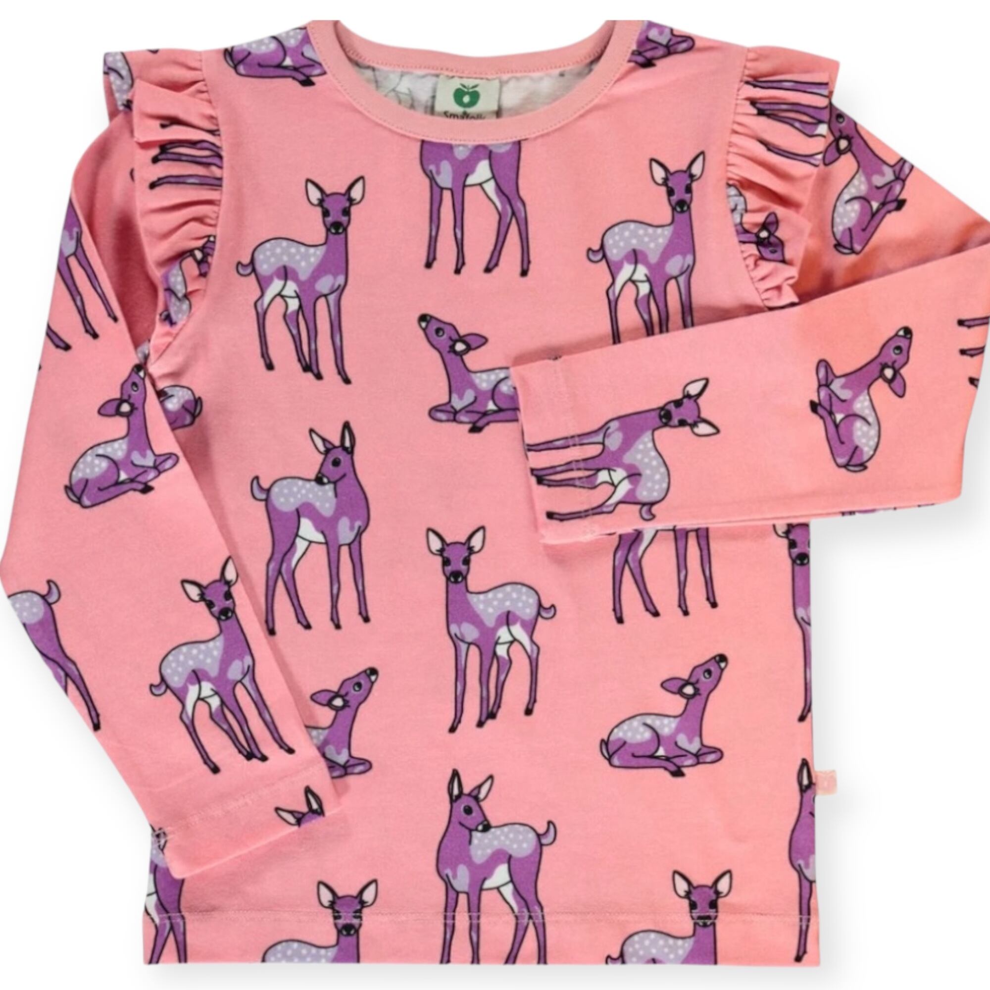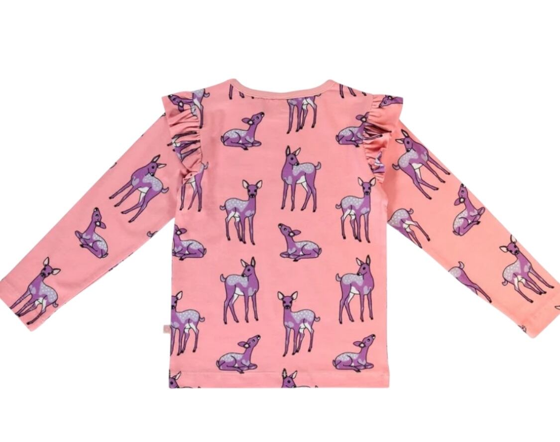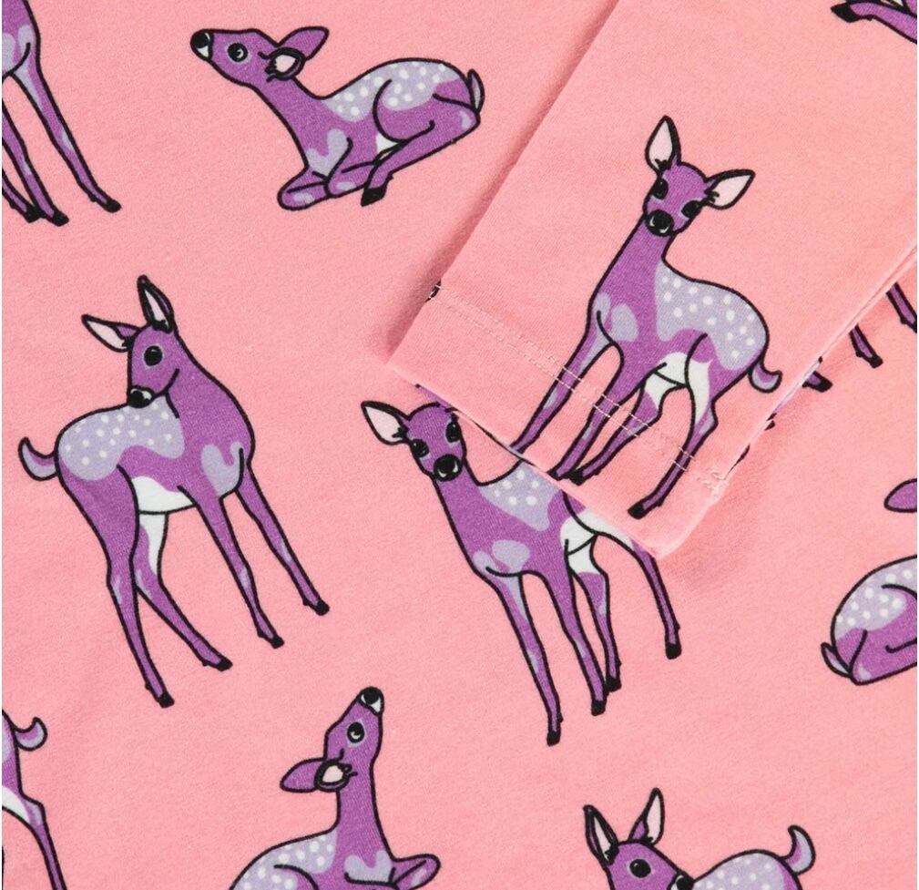 オーガニックで伸縮性のあるコットンジャージーで作られた鹿の長袖Tシャツ。